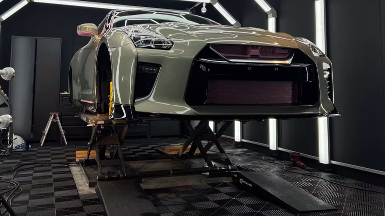 暗室とリフトを駆使し、多角的な視点で磨き上げられた塗装面からは、内側から発光するような深い艶が生まれています。